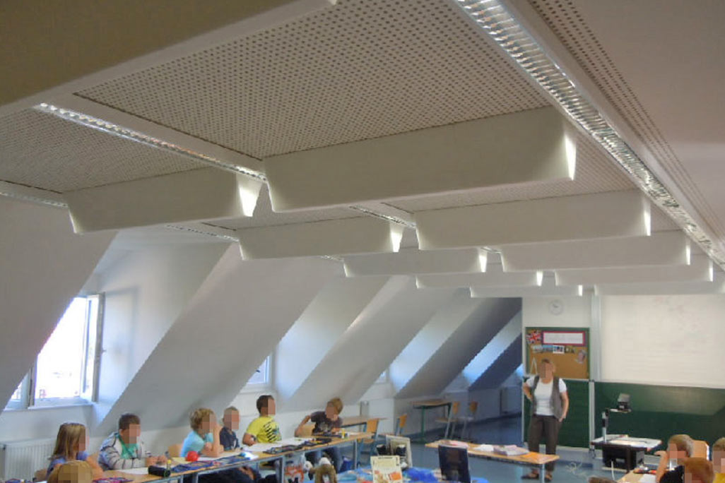 Škola poblíž německého Karlsruhe instalovala do třídy zvukově ochranný materiál soni TRAPEZ. Zde je výsledek: